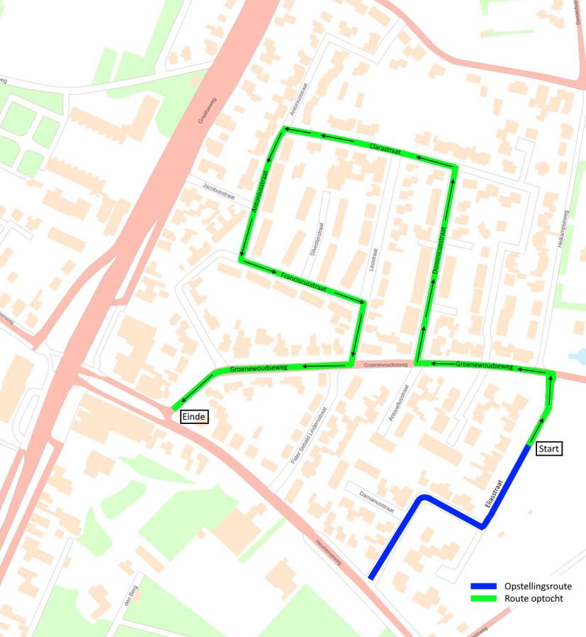 De optocht vindt zelf plaats op zondag 19 februari. Dit jaar zullen we een nieuwe route van de Optocht gaan rijden. De nieuwe route loopt in omgekeerde richting ten opzichte van hoe de route de afgelopen jaren (t/m 2019) geweest is.