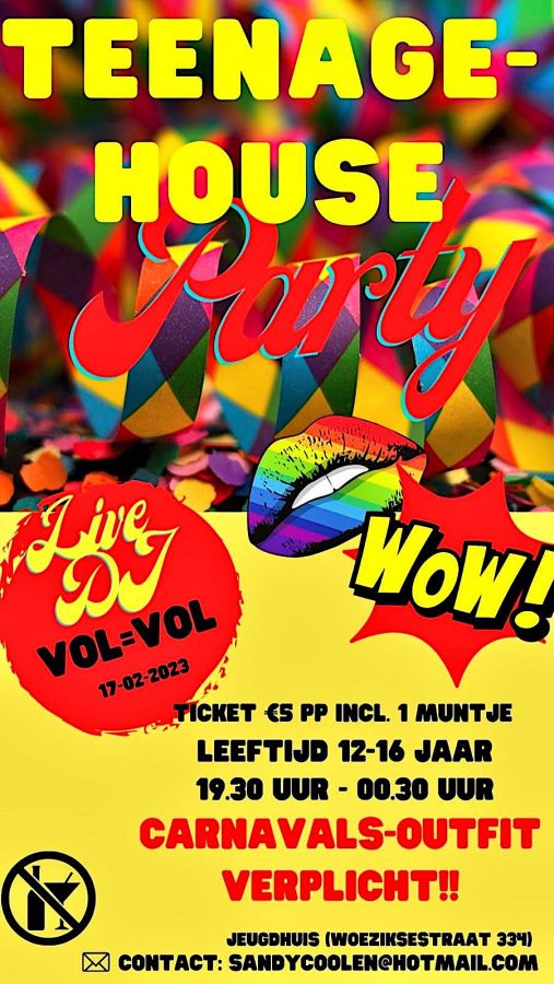 “Met nog maar 12 dagen tot aan carnaval kunnen wij met trots zeggen dat de kaartjes bijna uitverkocht zijn! Wij hadden dit gehoopt maar nooit verwacht. Leuk dat er zoveel jeugd van 12 t/m 16 jaar weer carnaval komt vieren in het Jeugdhuis in de Woezik!”