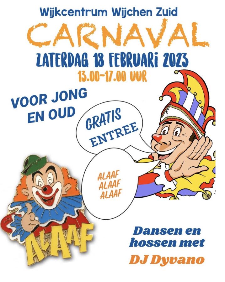 Zaterdagmiddag 18 februari CARNAVAL met DJ Dyvano 13.00-17.00 uur GRATIS TOEGANG voor jong en oud