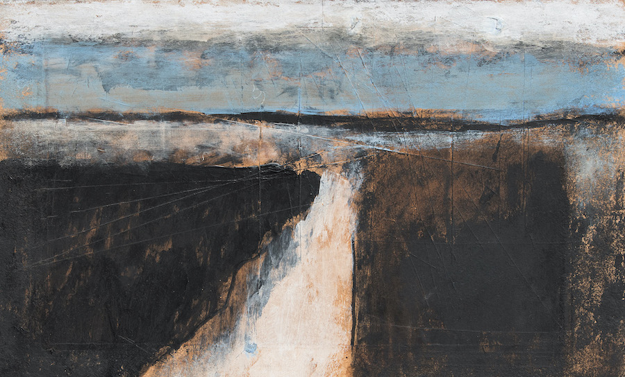 Het werk van Jan Radersma is vaak een kruisbestuiving tussen het Hollandse en Indische landschap en refereert o.a. aan Nederlandse akkers en de Indonesische sawa’s. Balancerend tussen abstractie en figuratie, in een ragfijn overgangsgebied, ontstaat werk waarin landschap en abstracte vorm volwaardig naast elkaar staan. Vaak sobere composities, waarin rechte maar ook rafelige, gevoelige lijnen domineren. In de landschappen verschuift het licht van dag naar nacht. In de geschilderde stemmingen kunnen beschouwers hun eigen herinneringen beleven en, net als de schilder, hun eigen ruimte zoeken tussen de dwarse lijnen en onvermoede paden.