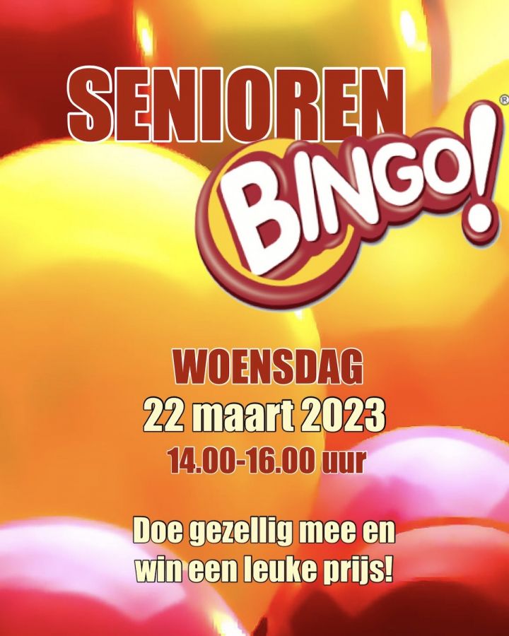 Woensdag 22 maart Seniorenbingo 14.00-16.00 uur Er zijn leuke prijzen te winnen! Bingokaart €5,50