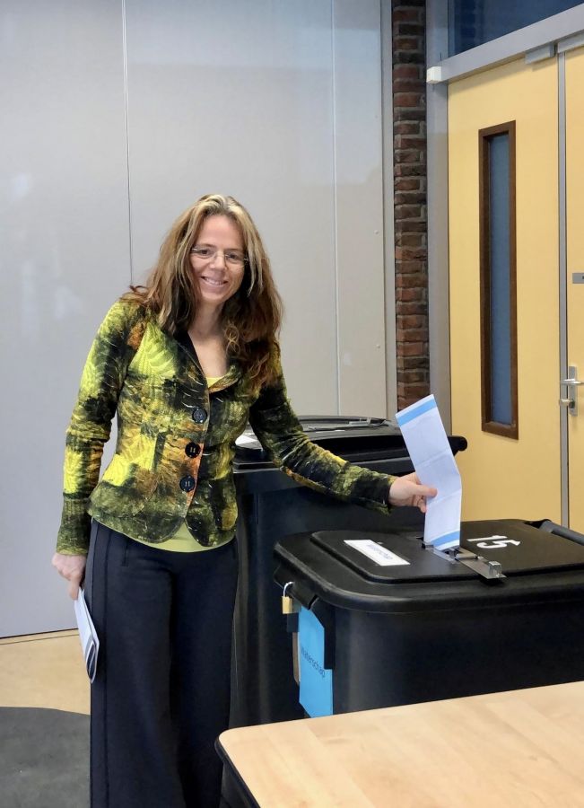 In Wijchen kon dat natuurlijk ook in het Huis van de Gemeente waar u o.a. wethouder Derks (op de foto) ziet stemmen. Onze gemeente liet weten: “Wij vinden het belangrijk dat iedereen mee kan doen. Er ligt bijvoorbeeld een braillelijst in het Huis van de gemeente. En er is in elk stemlokaal een kandidatenlijst met grote letters aanwezig. Op onze website kun je een voorgelezen kandidatenlijst vinden. Als iemand zelf niet kan stemmen door een lichamelijke beperking, dan mag een lid van het stembureau helpen.”