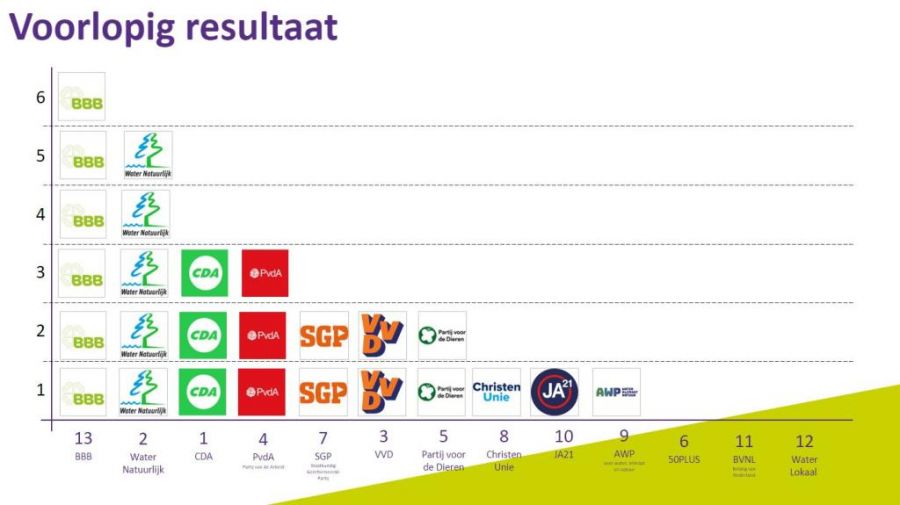 BBB de grootste partij, gevolgd door Water Natuurlijk