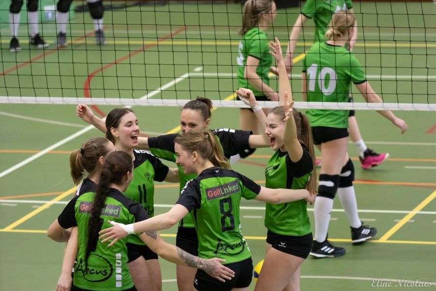 In een kolkende Arcus hield Trivos Dames 1 afgelopen zaterdag nummer 1 SSS uit Barneveld voorlopig af van het kampioenschap en directe promotie. In de laatste competitiewedstrijd verstevigden de dames van Trivos met een 3-2 overwinning hun derde positie. Alles hangt nu af van volgende week of onze Wijchense meiden nog mogen gaan spelen voor promotie naar de eerste divisie. Het blijft dus nog even spannend!