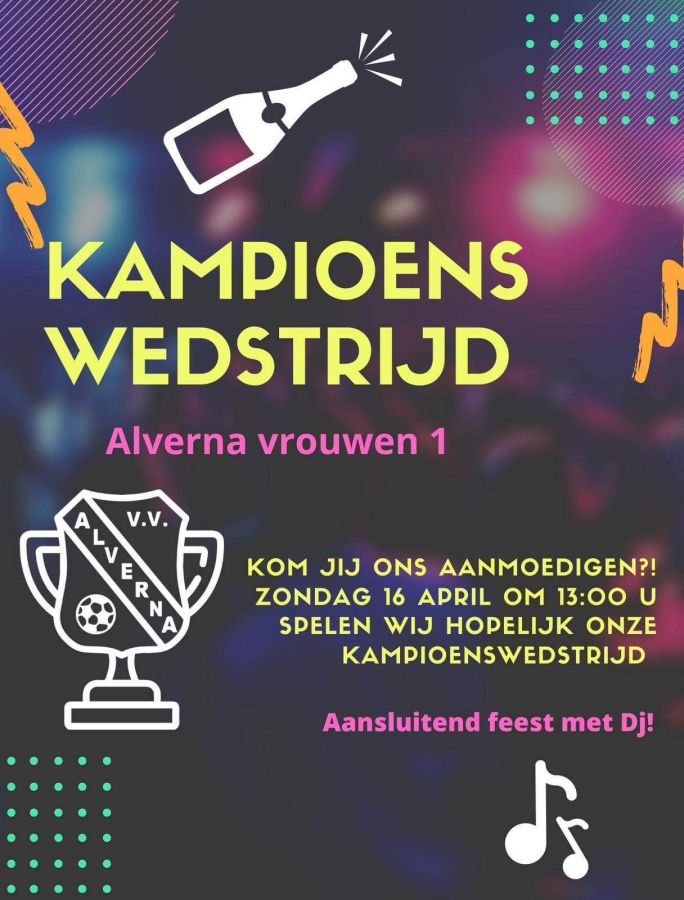 Alverna Dames 1 kan zondag kampioen worden, ga jij ze aanmoedigen?
