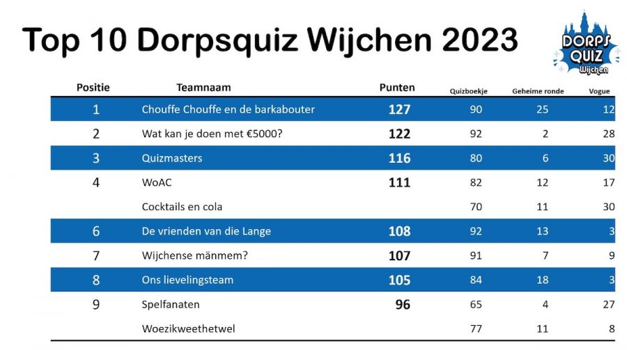 De derde editie van de Wijchense dorpsquiz zal plaatsvinden op zaterdag 6 april 2024.