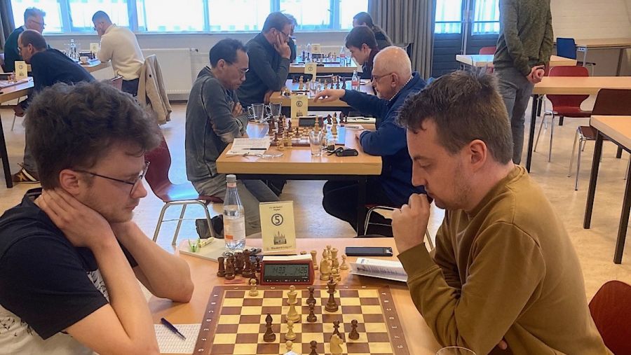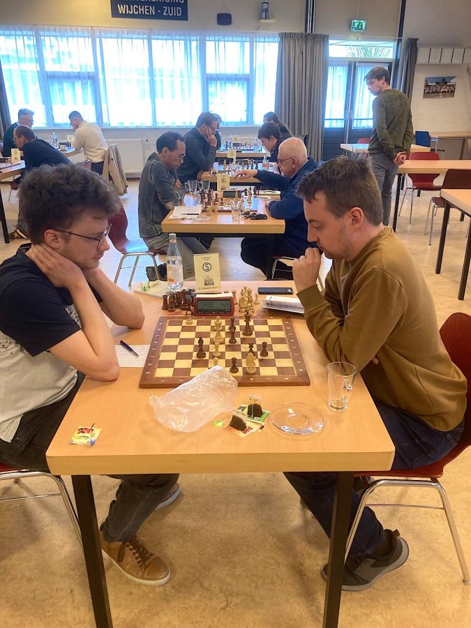 Bram Rutten moest vervolgens alle zeilen bijzetten tegen de op papier sterkste tegenstander, Diderick Holtland. Voor hem zat er ook niet meer in dan een remise. Als laatste was Simon van Dijk nog in de weer. Omdat de nederlaag op dat moment al vaststond was de puntendeling die hij wist te bereiken tegen Wouter Dinjens wel knap, maar niet echt meer van belang.