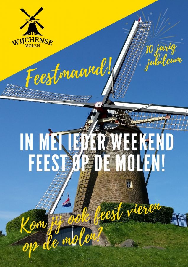 De hele maand mei staat op de Wijchense Molen in het teken van het 10-jarig jubileum van de molenwinkel: "Ieder weekend vieren we dit met verschillende festiviteiten op de molen."