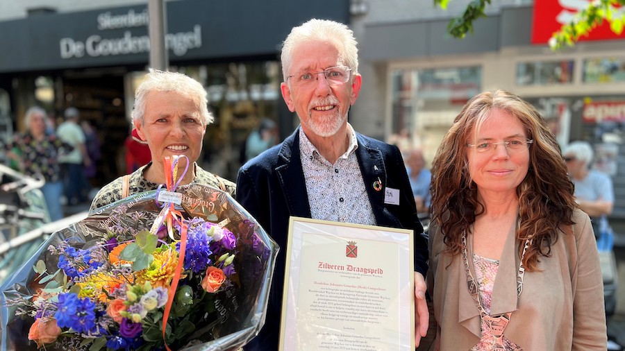 Op zaterdag 13 mei ontving Henk Campschroer uit Wijchen een Zilveren Draagspeld. Burgemeester Renske Helmer-Englebert reikte deze aan hem uit tijdens de feestelijke heropening van de Wereldwinkel aan de Touwslagersbaan.