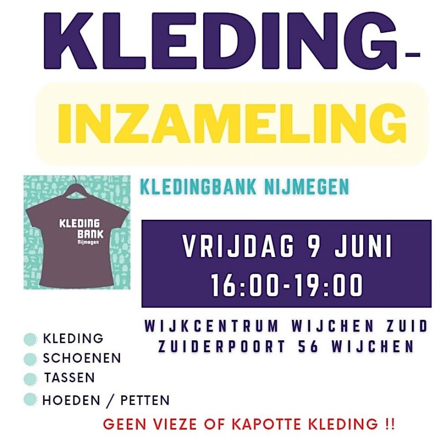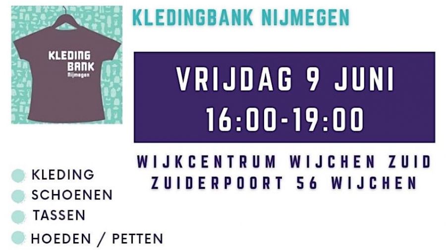 Op vrijdag 9 juni 2023 van 16.00-19.00 uur is er een inzamelactie voor Kledingbank Nijmegen e.o. bij Wijkcentrum Wijchen Zuid.