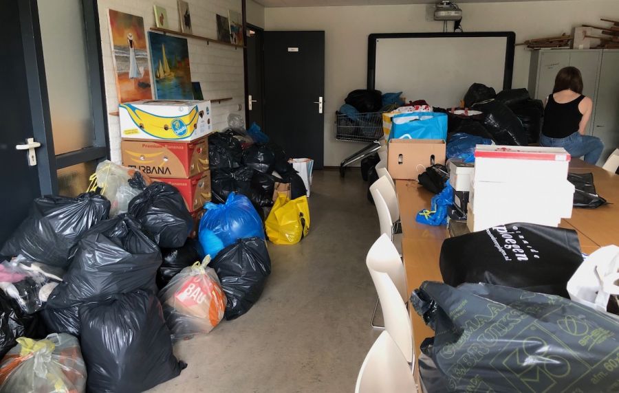 "Vroeg in de ochtend kregen we telefoontjes of ze al kleding e.d. mochten brengen. Auto’s vol geladen, fietstassen vol, geleende winkelwagens en scooters opgevuld met allerlei textiel.