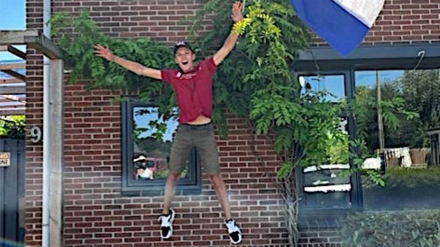 Yesse Vrolijk uit Balgoij springt een gat in de lucht want is geslaagd, gefeliciteerd!