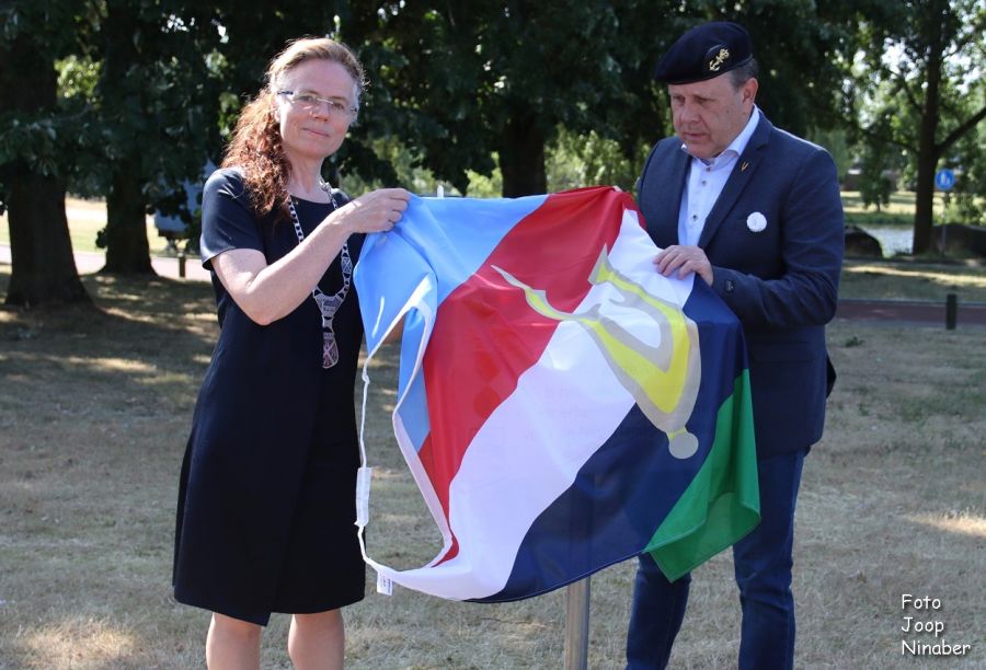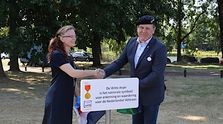 In het bijzijn van een kleine 20 veteranen is vanmorgen aan het Wijchens Meer het Anjerperk in gebruik genomen. Tijdens een beperkte ceremonie hebben burgemeester Renske Helmer-Englebert en voorzitter Jan Evers van Stichting Veteranen gem. Wijchen het bord bij het Anjerperk onthuld.
