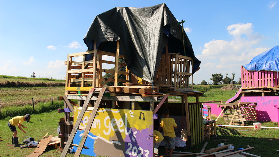 Op de laatste dag van de Kindervakantieweek, woensdag 23 augustus, konden de 80 kids wederom op een zonnige dag nog even op de aangelegde glijbaan en van het leuke eindfeest genieten, met ook nog eens lekkere frietjes met snacks! Drie dagen bouwen, spelen, knutselen, sporten en gek doen zit erop. Zo bezochten ze o.a. het Klimbos, was er een grappige clown en kregen ze een optreden vanuit het Baroque Festival