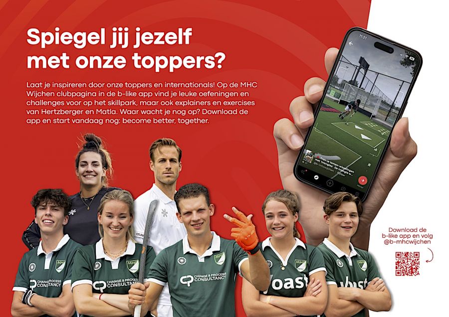 Laat je inspireren door onze toppers en internationals! Op de MHC Wijchen clubpagina in de B-like app vind je leuke oefeningen en challenges voor op het skillpark, maar ook explainers en exercises van Hertzberger en Matla. Waar wacht je nog op? Download de app en start: become better, together.