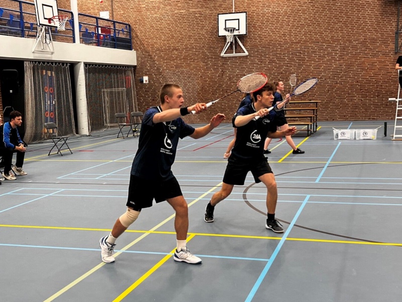 Vol goede moed begon 2dA Smashing aan de heren- en damesdubbel tegen de landskampioen van afgelopen seizoen. In de herendubbel namen Rune en Casper het op tegen Brian Wassink en Finn Achthoven. In de eerste set ging het duo van 2dA Smashing vliegend van start en wisten een lange tijd de voorsprong te behouden. Helaas werd de set net verloren met 19-21. De tweede set kwam het Duinwijckse duo meer op stoom en wonnen deze met 11-21. Op de baan ernaast speelden Maureen en Katinka tegen Imke van der Aar en Meerte Loos. Het gelegenheidsduo van 2dA Smashing moest in de eerste set nog de zenuwen de baas worden. Door veel eigen fouten werd de set verloren met 11-21. De tweede set wisten de dames lange tijd bij te blijven, maar ook hier bleek Duinwijck een maatje te groot. Deze set werd verloren met 16-21.