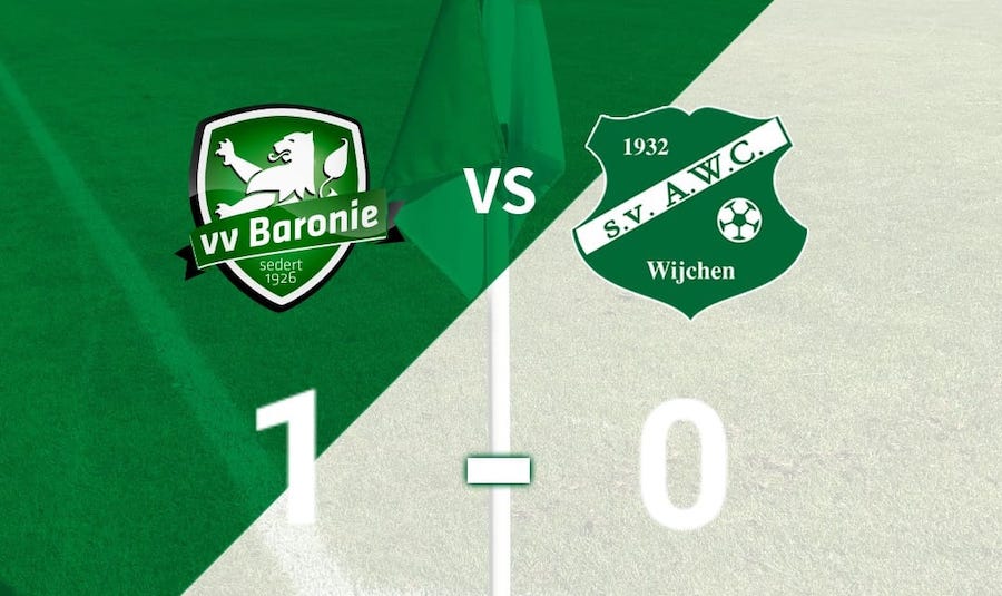 Met Youri Hubers in de spits en Boy Visser en Jorn Visser in de wissel begon AWC verrassend in de uitwedstrijd tegen Baronie. Op een moeilijk te bespelen kunstgrasveld waren beide clubs gelijkwaardig in de eerste helft. Vlak voor rust ronde Vinay Saltani een mooie aanval van AWC goed af, maar de Bredase keeper Bram Umar redde knap.