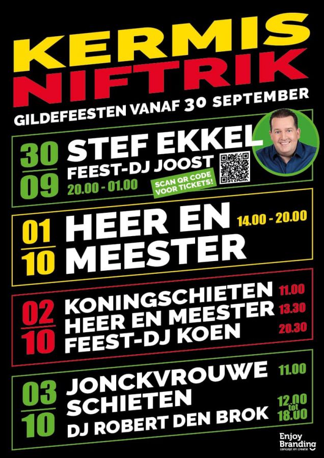 Van zaterdagavond met zanger Stef Ekkel en Feest-DJ Joost t/m dinsdag 11:00 uur met het Jonckvrouwe schieten én afsluitend DJ Robert den Brok, is het 4 dagen groot feest in het kerkdorp Niftrik! Meer info op https://www.facebook.com/St.Damianus