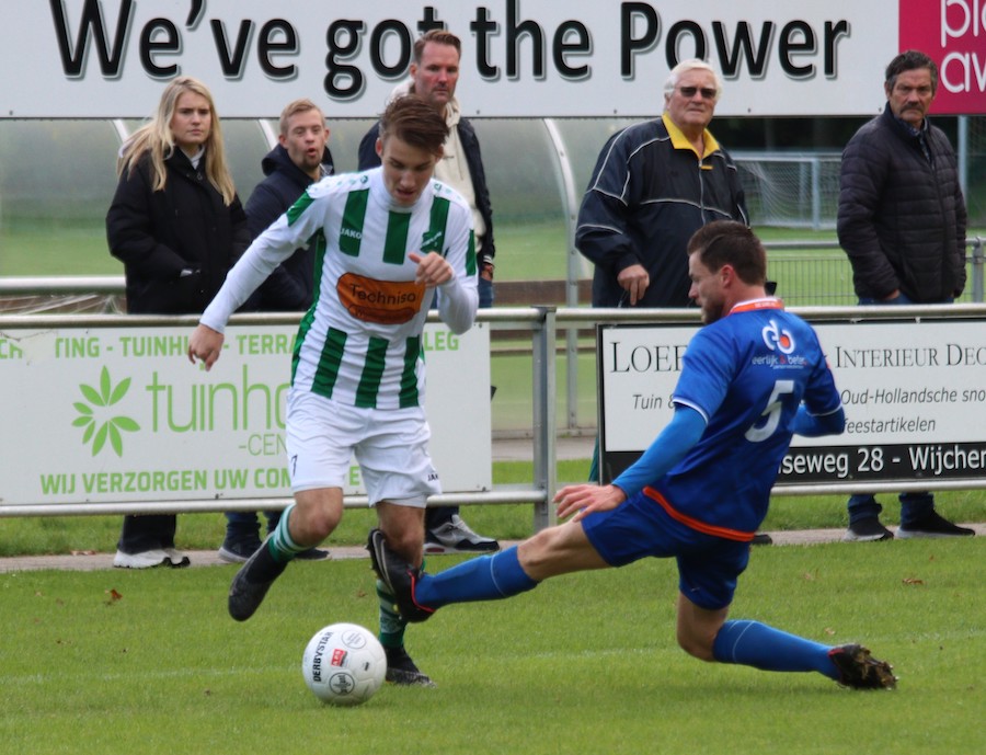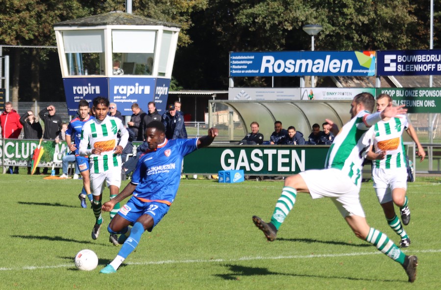 Aan het einde van de eerste helft werd de spits Givon Derby van TEC op de zestien aangespeeld, deze draaide weg en schoot de bal onhoudbaar binnen voor Tijn van de Groes. Ruststand 0-3.