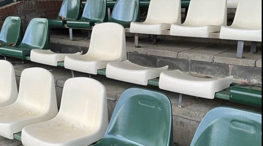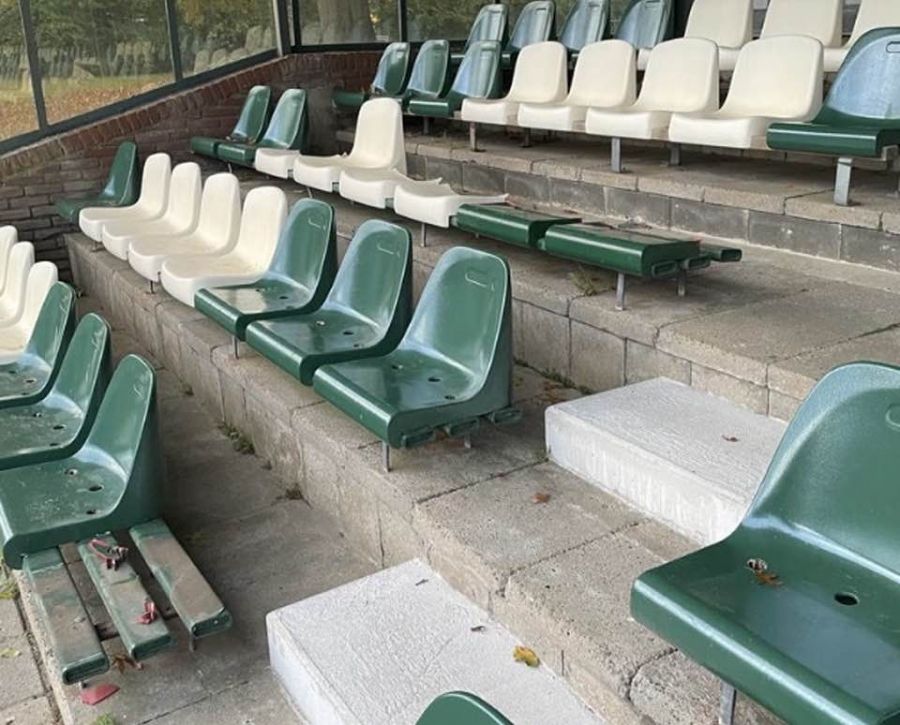 Voor de derde keer in korte tijd, zijn er in de avonduren, tribune-stoeltjes bij AWC gesloopt.