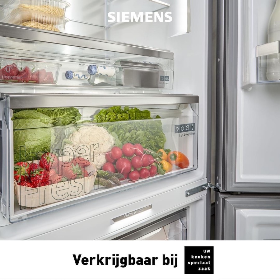 Verse ingrediënten blijven langer houdbaar met Siemens hyperFresh, door speciale vershoudlades. Dat bespaart veel ritjes naar de supermarkt en betekent meer vrije tijd. Bekijk het zelf! Maak een afspraak en kom langs aan de Nieuweweg via: www.janssenkeukens.nl/contact