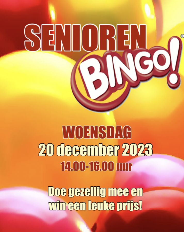 Woensdag 20 december Seniorenbingo in Wijkcentrum Wijchen Zuid