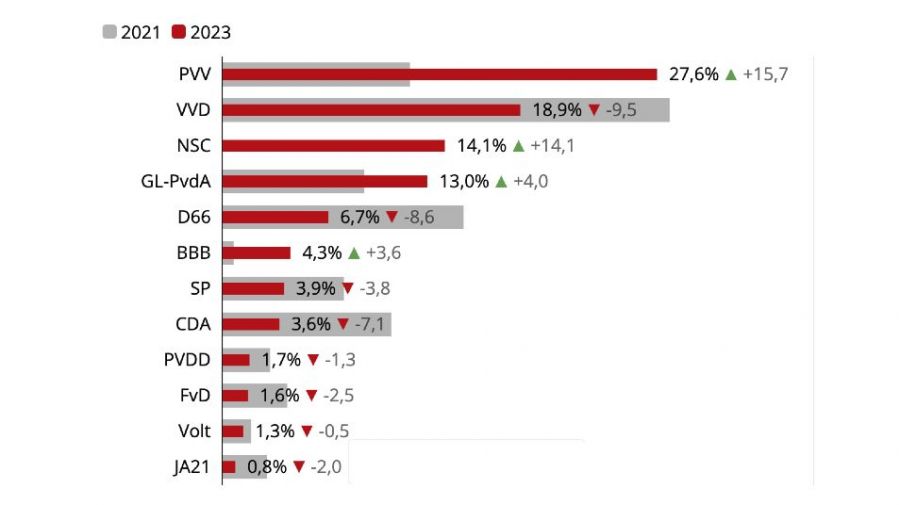 De landelijke trend heeft zich ook in Wijchen doorgezet. Met een opkomst van 82,4% scoorde in ons dorp de PVV van Geert Wilders het best:
