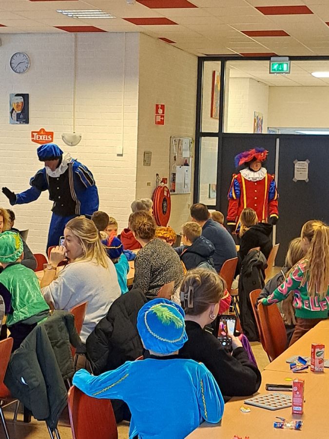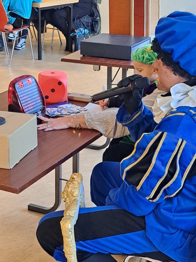 De Pieten hebben super hun best gedaan om de kinderen te vermaken. Ze hebben zelfs 2 rondes de bingo gedraaid en dit ging heel goed. De kinderen waren enthousiast en zelfs de volwassenen hebben genoten. Na afloop hebben ”de Pieten” een leuke attentie achtergelaten voor alle kinderen.