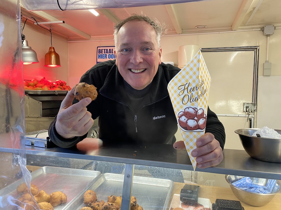 Pierre: “Ook onze appelbeignets, dit jaar voor €2,40 per stuk, zijn een begrip in Wijchen geworden. En wat onze oliebollen betreft (met of zonder rozijnen) krijgt je er 10 voor €12,- mét poedersuiker natuurlijk!”