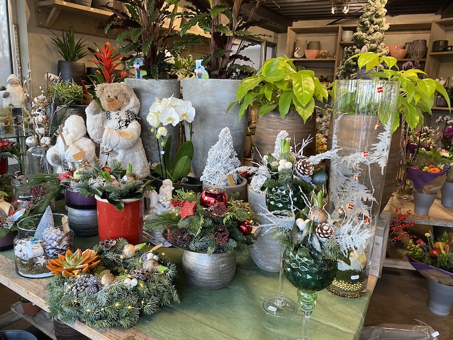 Natuurlijk is de gezellige bloemisterij De Blauwe Steen in Winkelcentrum Zuiderpoort al volledig in kerstsfeer gedompeld.