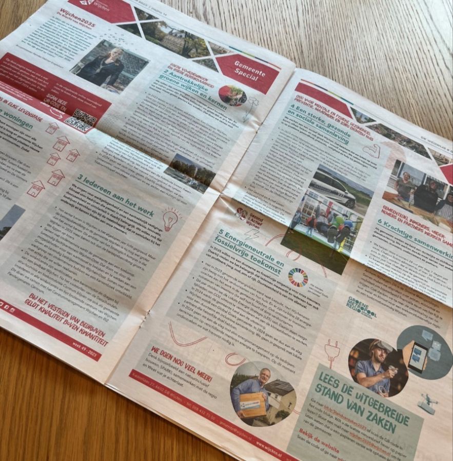 In 2022 deelden Wijchenaren hun dromen en ideeën voor de toekomst van de gemeente. Eind 2022 kwam het magazine 𝗗𝗲 𝗞𝗿𝗮𝗰𝗵𝘁 𝘃𝗮𝗻 𝗪𝗶𝗷𝗰𝗵𝗲𝗻 uit: een toekomstvisie en strategisch kompas tot het jaar 2035.