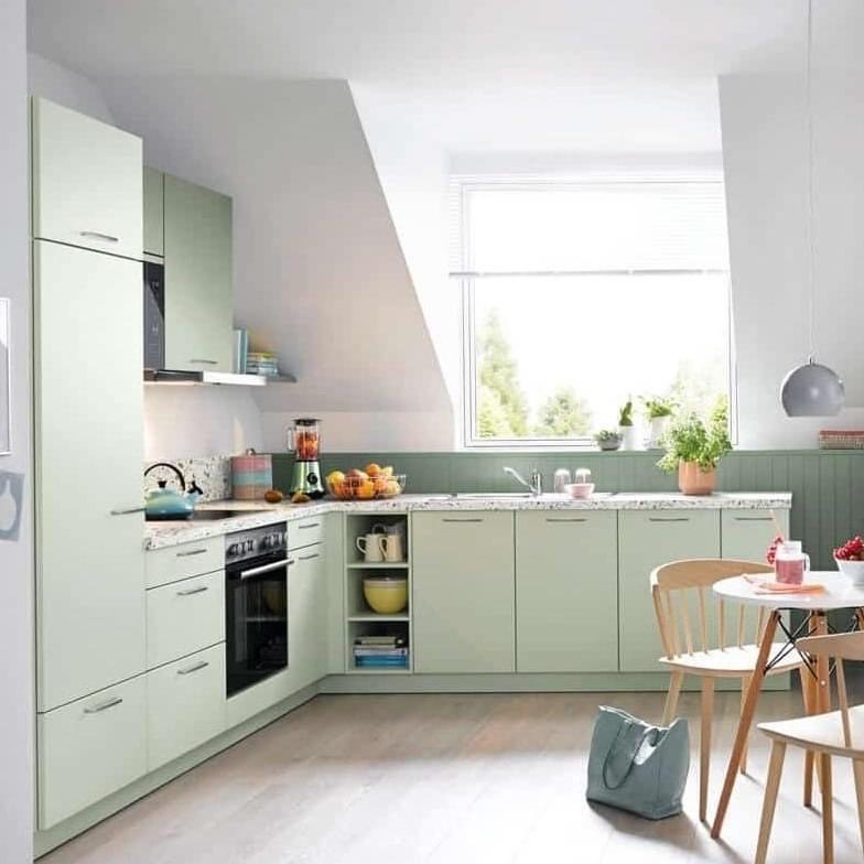 De specialisten van Janssen Keukens aan de Nieuweweg laten weten: “Duik in de serene sfeer van deze prachtige lichtgroene keuken van Neola! Het verfrissende groene tint voegt een vleugje rust toe aan je keuken."