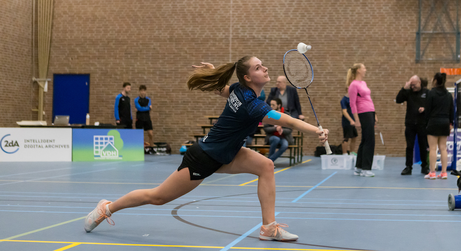 Yannic mocht het opnemen Sander Prenen. De twee heren gingen in de eerste set gelijk op. Sander wist een kleine achterstand weg te werken, maar kon net niet doorstoten naar een overwinning. In de tweede set trok Yannic net aan het langste eind, en pakte de winst met 23-21 21-18. Leonie ging op de baan ernaast aan het werk tegen Xenia Koelmel. Eerdere ontmoetingen tussen beide dames gingen naar Xenia, dus Leonie was gebrand om te winnen. Helaas had Xenia andere plannen. Met aanvallend spel voerde Leonie de druk op, maar Xenia wist dit goed te pareren en trok de wedstrijd naar zich toe met 21-15 21-17.