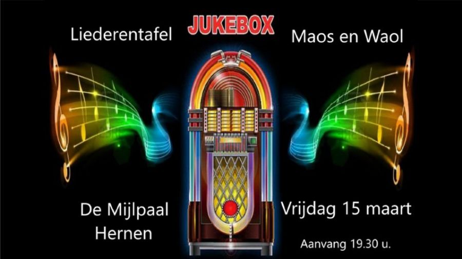 Vanuit 4 Maos en Waolers is het idee ontstaan om in 2024 een Liederentafel uit te gaan dragen onder de naam ‘De JukeBox’, in het land van Maas en Waal. Met name in de gemeenten Wijchen, West Maas en Waal en Druten in verschillende dorpshuizen. De 1e Liederentafel wordt gehouden in dorpshuis de Mijlpaal in Hernen op vrijdag 15 maart a.s. vanaf 19.30 u.