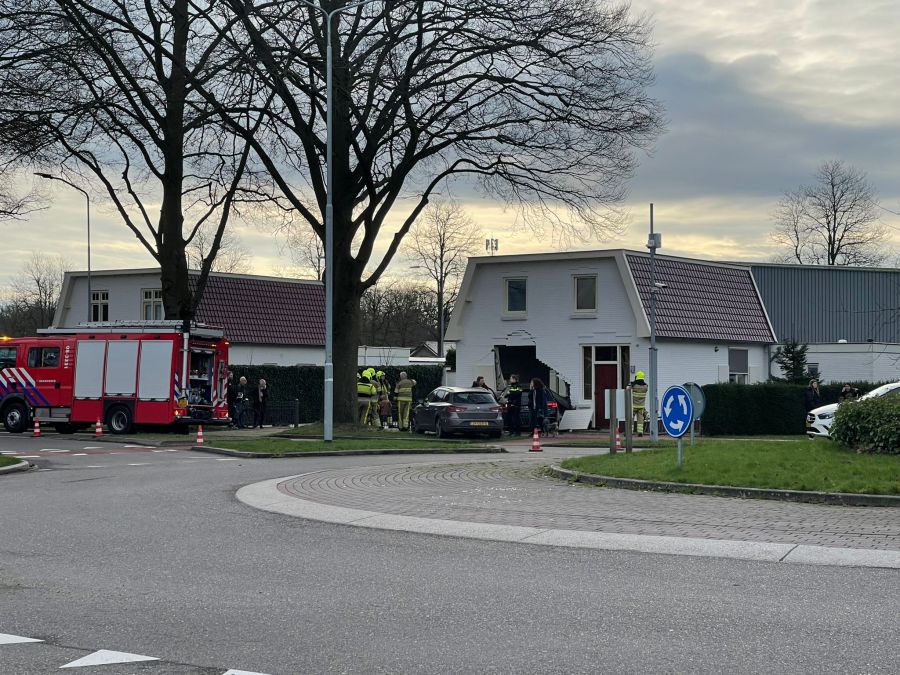 De auto reed vol gas over de rotonde en rechtdoor door de berm en kwam tot stilstand tegen een pand. Hoe de auto van de weg kon raken, is nog niet bekend. De auto kwam tot stilstand tegen de gevel van een gebouw. Meerdere hulpdiensten rukten uit. De bestuurster raakte niet ernstig gewond.
