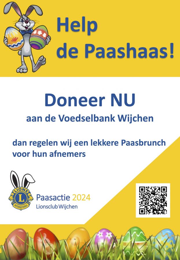 In Wijchen zijn meer dan 100 mensen afhankelijk van de Voedselbank. Wat zou het mooi zijn als zij een keer van een luxe brunch kunnen genieten. De Lions zamelen daarvoor geld in. Door de QR-code te scannen, kan iedereen geld overmaken. Dat geld wordt besteed aan de inkoop van heerlijke brunchpakketten. Zelf voedsel doneren kan niet.