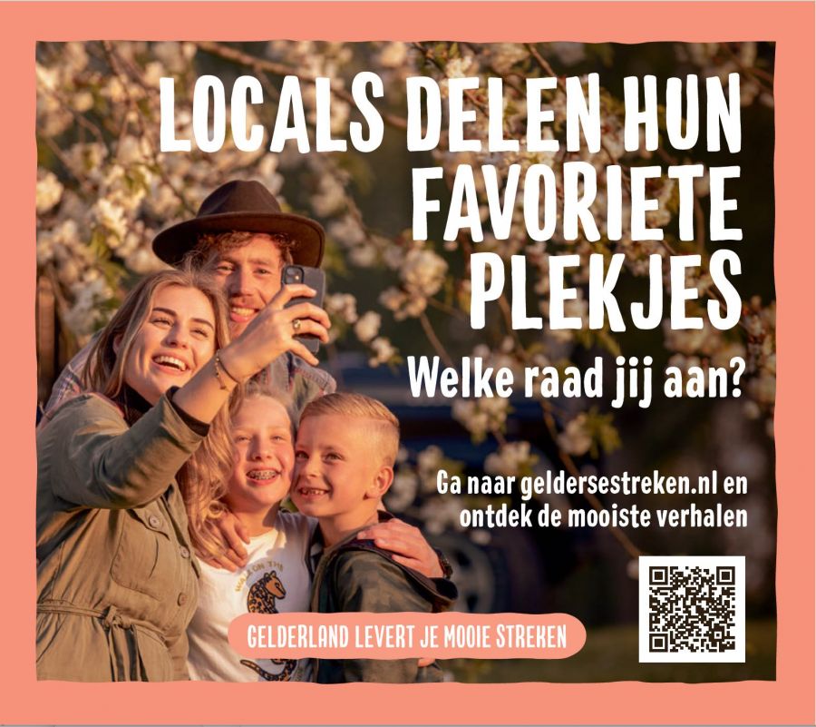 De mooiste uitzichten, de lekkerste restaurants en unieke plekjes; de locals weten het je als geen ander te vertellen. Om deze tips te verzamelen, is er op de website geldersestreken.nl een formulier beschikbaar gesteld waar inwoners hun favoriete plek en mooiste verhaal kunnen delen. Deze verhalen worden verzameld en gepresenteerd op een interactieve kaart waarop ‘alle locaties met een mooi verhaal’ worden gemarkeerd als favorieten van lokale bewoners. Op deze manier wordt een levendige streek vol prachtige verhalen gecreëerd, die anderen zal inspireren om hun eigen verhalen te delen.