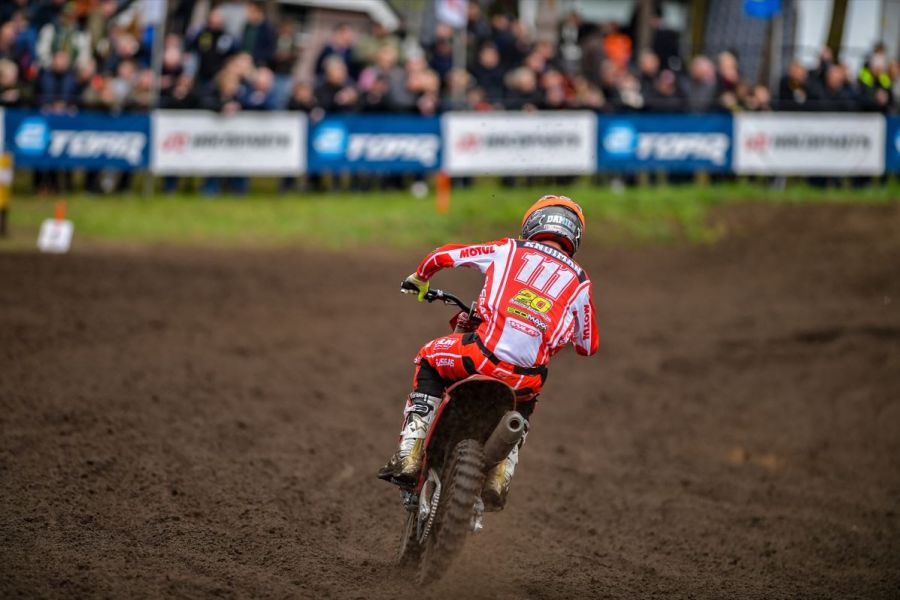 Tijdens de start van de eerste manche was Damien minder goed weg. Hij werd meteen ingesloten tussen de toppers uit het sterke MX2 veld maar wist in de eerste bocht kortaf te draaien en kon de eerste ronde doorkomen op een 18e positie. Damien zat goed in zijn ritme en wist zich terug te vechten na een 14e plaats in de eerste manche.
