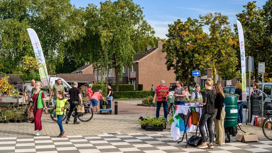 Bewoners van de wijken Woezik, Bedrijventerrein Zesweg, Alverna, Wijchen-Zuid, Kerkeveld en Huurlingsedam konden zich eerder al aanmelden voor een gratis boompje, struik, plantjes of een afkoppelstuk voor de regenpijp. Dat product kunnen ze afhalen bij de kraam, in ruil voor een steen uit hun tuin. 113 inwoners doen mee.