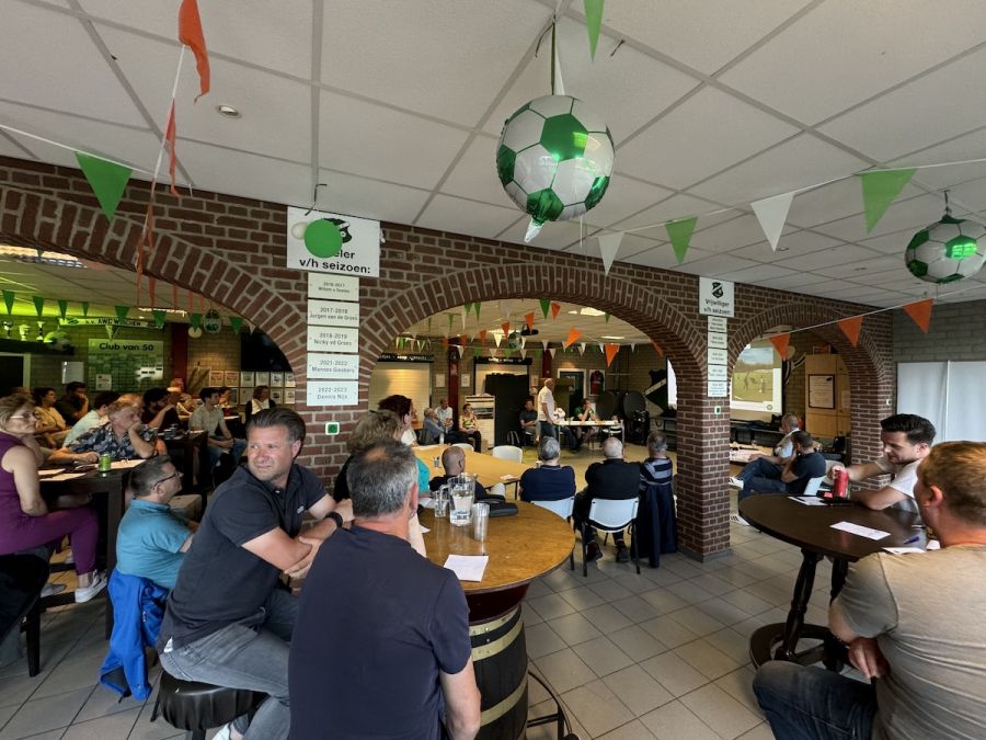 Xander Notté, penningmeester, lichtte het op de vergadering toe: “Onze slogan ‘Samen een, samen beter’ betekent voor ons ook dat we voetbal en het verenigingsleven voor iedereen toegankelijk willen houden. Om dat te doen willen we juist in deze tijd de contributie verlagen, in plaats van gewoon weer standaard met de inflatie te verhogen.” Concreet betekent dit dat leden tussen de €10 en €45 per jaar minder gaan betalen dan ze anders gedaan zouden hebben.