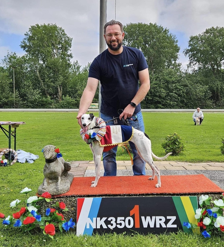 Madaki’s Akashi White is naam van de prachtige Whippet van Johan Kortenray die op zondag 2 juni in Rotterdam opnieuw Nederlands kampioen werd op de 350 meter!