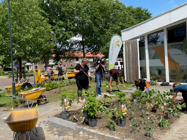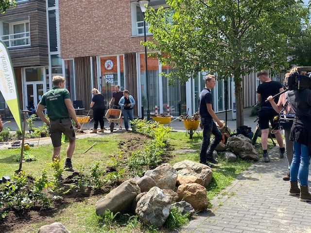 Omroep Gelderland was de hele dag aanwezig om opnamen te maken voor het programma De groenste straat van Gelderland. Gemeente Wijchen leverde een grote afvalcontainer en zwarte aarde voor de nieuwe groenvoorzieningen.