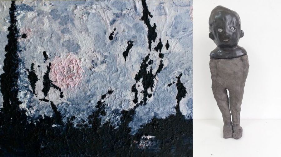 Yvonne Halfens en Maria C Brouwer zijn elkaar vaak tegengekomen op groepstentoonstellingen en leerden zo elkaars werk kennen en waarderen. Het paste altijd wonderwel bij elkaar. Halfens met haar vervreemdende beelden, mensfiguren, ongemakkelijk in hun vel. Daarnaast de melancholische landschappen van Brouwer.