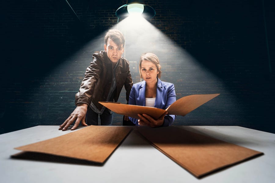 Met ‘District 12’ willen we een vernieuwende theaterbeleving creëren die het publiek uitdaagt, vermaakt en je volledig onderdompelt in het mysterie. Ik ben zelf groot fan van ‘Wie is de Mol’. Maar daarbij kun je de beelden stilzetten en scènes telkens opnieuw zien om zo het mysterie in kaart te brengen. Dat kan in het theater niet. Je moet ruim twee uur alert zijn, niks voor vanzelfsprekend houden en niets uitsluiten.”