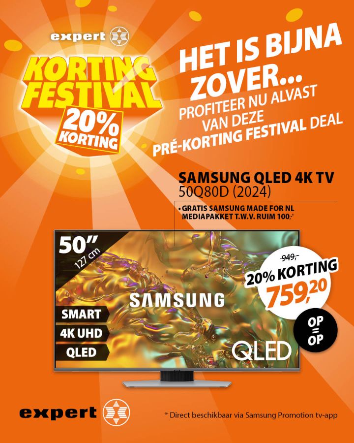 Expert Wijchen-Beuningen meldt: "Van maandag 16 september t/m zondag 29 september hebben we een 2 weken Korting Festival met kortingen tot wel 20%! ๐