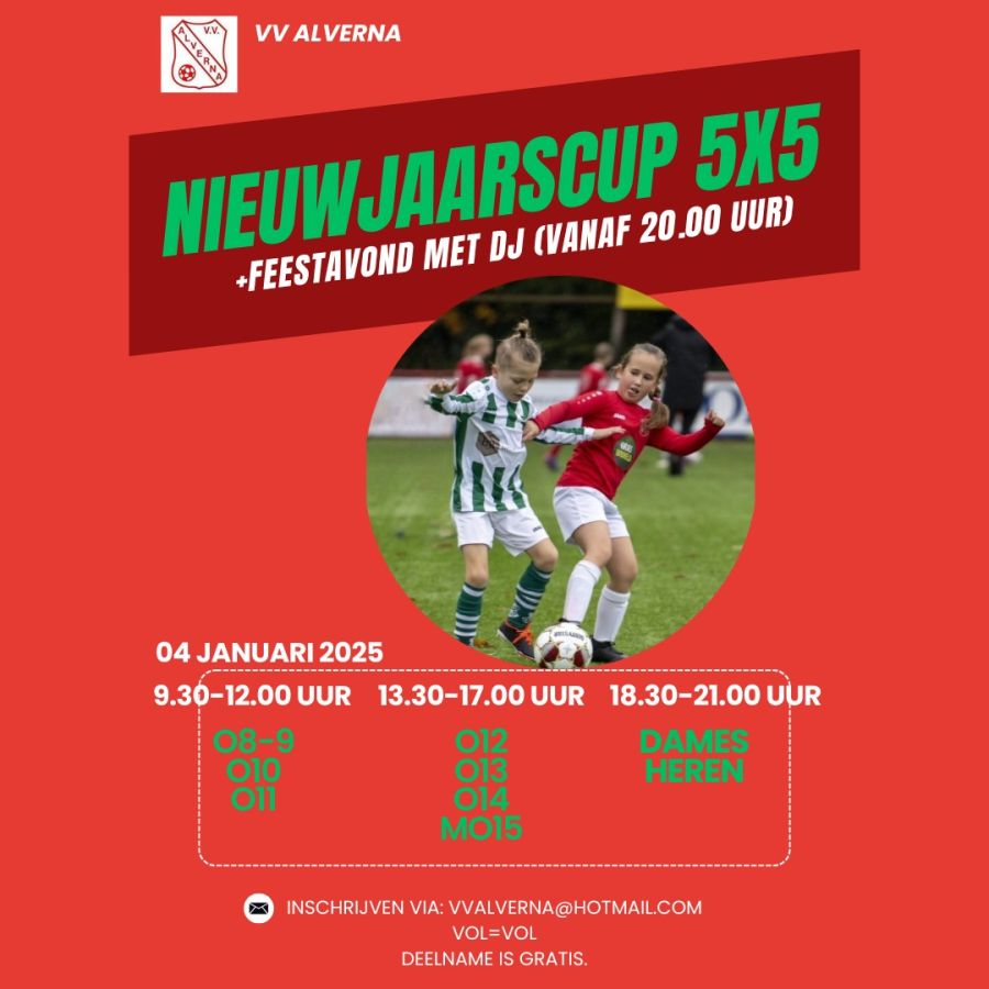 Na een succesvolle 1e editie in 2024 organiseert vv Alverna aankomende winterstop de 2e editie van de Nieuwjaarscup. Overdag voor de jeugd, in de avond voor seniorenteams gevolgd door een feestavond. Gespeeld wordt op kunstgras en er wordt 5 tegen 5 gespeeld met keeper.