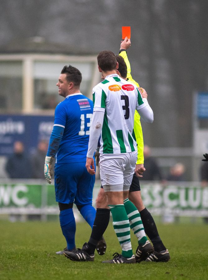 Hierna golfde het spel op en neer. In de 88e minuut kon MASV doorlopen op Mitchel, die probeerde de bal buiten de zestien te keren maar daarbij ook de bal ongelukkig met de hand raakte. Hij kreeg rood en Rico mocht invallen voor de laatste minuten. Hij pareerde de vrije trap prima. Daarmee kwam de uitslag op 1-1.
