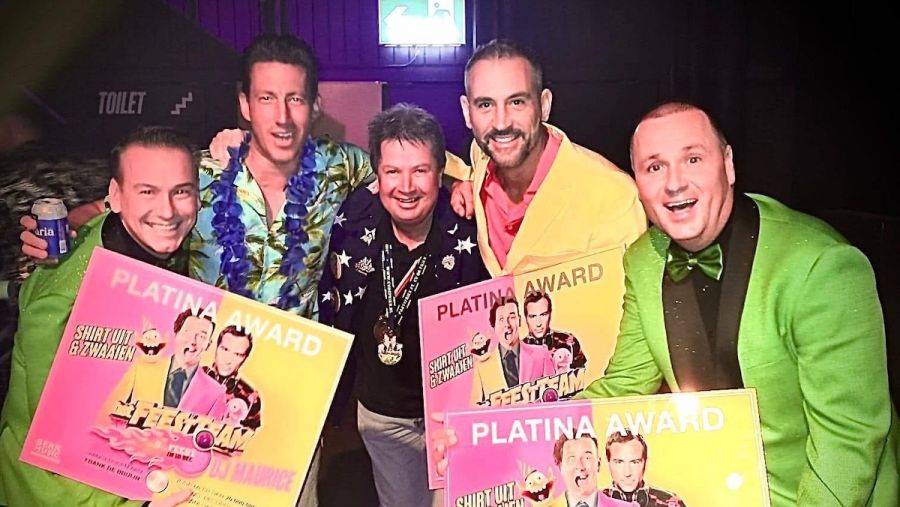 Maar liefst 23 miljoen streams voor Het Feestteam! Stan van den Dobbelsteen en Wijchenaar Frank de Bruijn lieten zaterdag 25 januari trots weten: “JAAAAAAAAA!!!! gisteravond ontvingen wij uit handen van DJ Maurice een PLATINA PLAAT voor Shirt uit & Zwaaien. Hoe trots kun je zijn!!