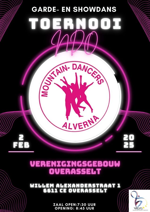 De Mountain Dancers uit Alverna organiseren hun jaarlijks danstoernooi op 2 februari a.s. Het belooft een mooie dag te worden met een divers aanbod van vele dansen.