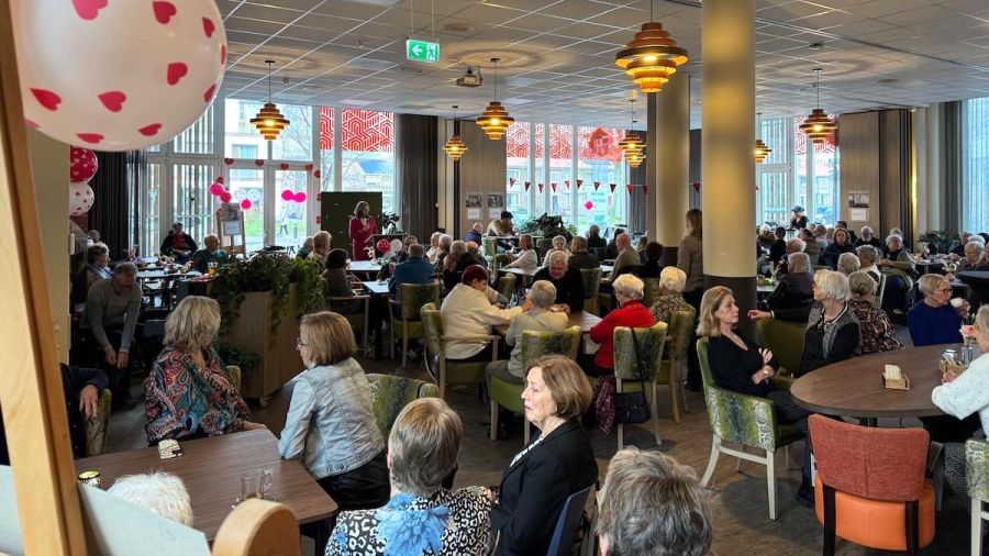 Bewoners, familieleden, buurtgenoten, medewerkers en vrijwilligers kwamen samen om de vernieuwde ruimte te bewonderen en te genieten van een feestelijk programma met muziek en lekkernijen.